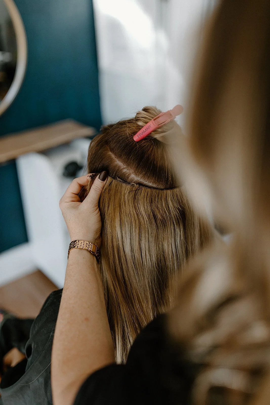 For first-time clients, the initial investment ranges from $1,500- $1,800 (18-inch hair) to $2,200-$2,400 (24-inch hair). This will include hair color, extension hair, custom color matching, installation, cut, and style. We’ll work together to find the best look for you and make it happen.